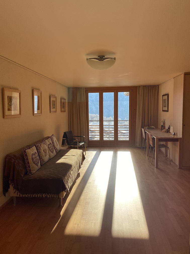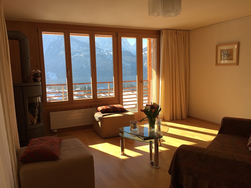 You’ll have your own space: a double room put to single-occupancy use, with stunning views of the mountains (including Wetterhorn, Wellhorn, Engelhörner and Eiger) and high in natural light; there are three bath/shower-rooms. A generous lounge with a log burner, and a large kitchen-diner, offer the perfect atmosphere for relaxing and chatting. Breakfast, lunch (at a lovely restaurant on days 2-6), and home-cooked dinner will be provided. In the event of a workshop- and feedback-based retreat with more than three participants (max. six in total), three would be housed in nearby accommodation of a comparable level; all activities, as well as lunch and dinner, would be with the whole group. This arrangement has worked highly successfully before, thanks to the proximity and comfort of the accommodation secured.